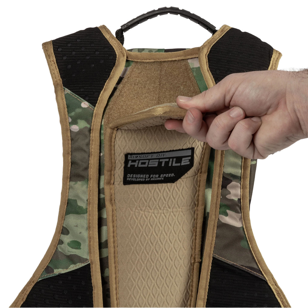 • HOSTILE removable velcro patch attached to the outer storage compartment.
