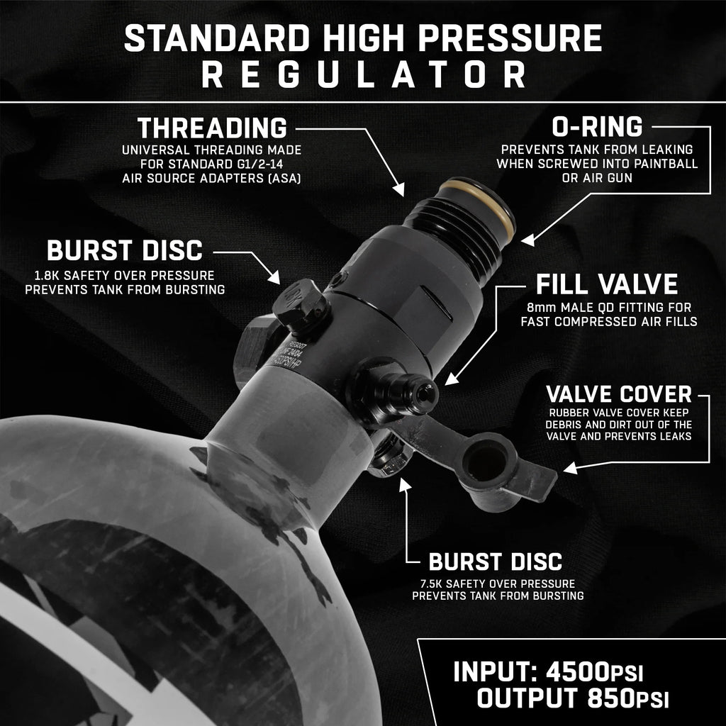 The HK Army AeroLite Air System has been developed with performance and affordability in mind. The comprehensive system pairs a lite-weight carbon fiber bottle and a reliable aluminum regulator with an output pressure of 800 psi. The AeroLite system includes a 5-year hydro cycle and is available in 4 color options.