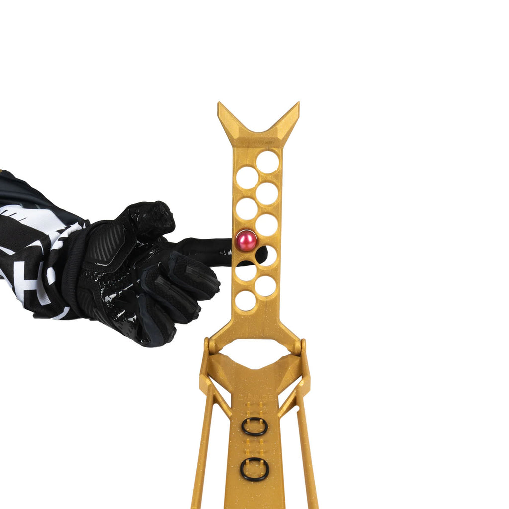 The HK Army Joint Folding Gun Stand is a collapsible gun stand that accommodates all marker types. This stand is precisely engineered to securely hold your paintball marker with tank and loader. It's lightweight, compact and collapsible, making it easy to take with you wherever you go. Plus, the integrated ball sizer and storage for o-rings make it convenient to keep your gear organized.