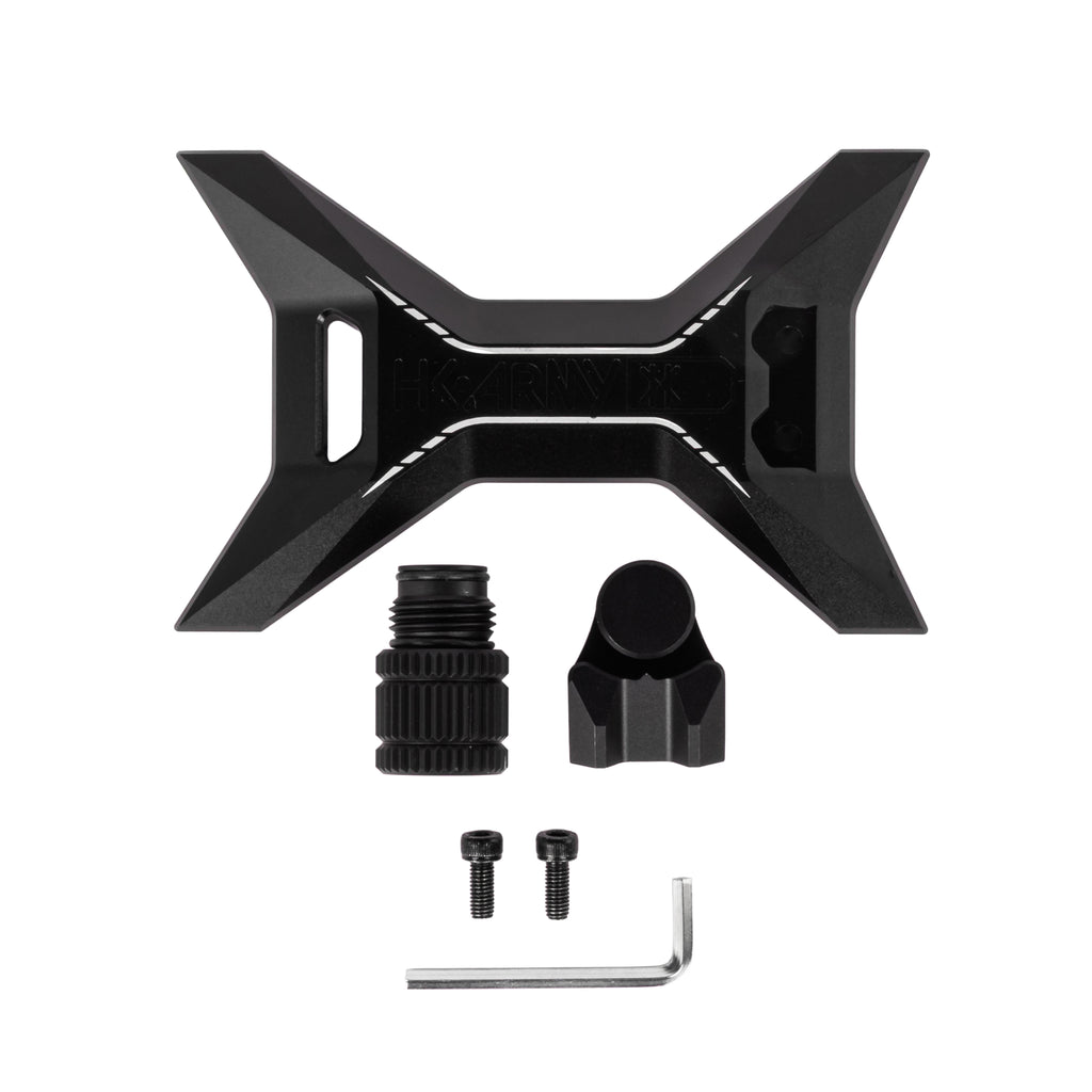 Featuring our new Star Mount System, the Gravity Lock allows you to first secure the mount into your gun’s ASA, then simply slide it onto the stand. This eliminates the risk of scratching the outside of the ASA while locking your marker in a perfectly vertical position. Built from precision-machined aluminum, the Gravity Lock gun stand offers unmatched stability and a clean, professional look. Perfect for showcasing your setup at home, the field, or your local pro shop.