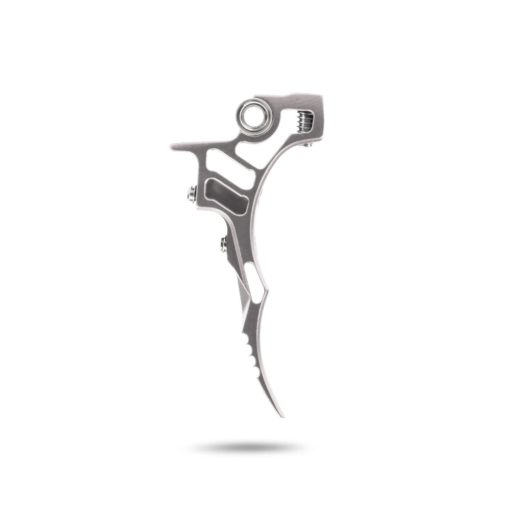 Machined Aluminum: Crafted from lightweight aircraft-grade aluminum that offers durability without added weight. The skeletonized design helps reduce the overall weight while adding to the aggressive look of the trigger.