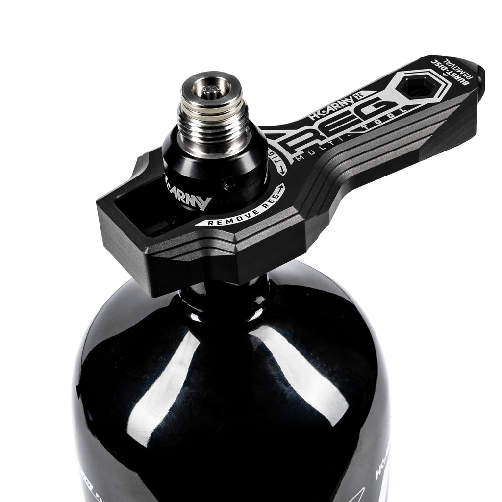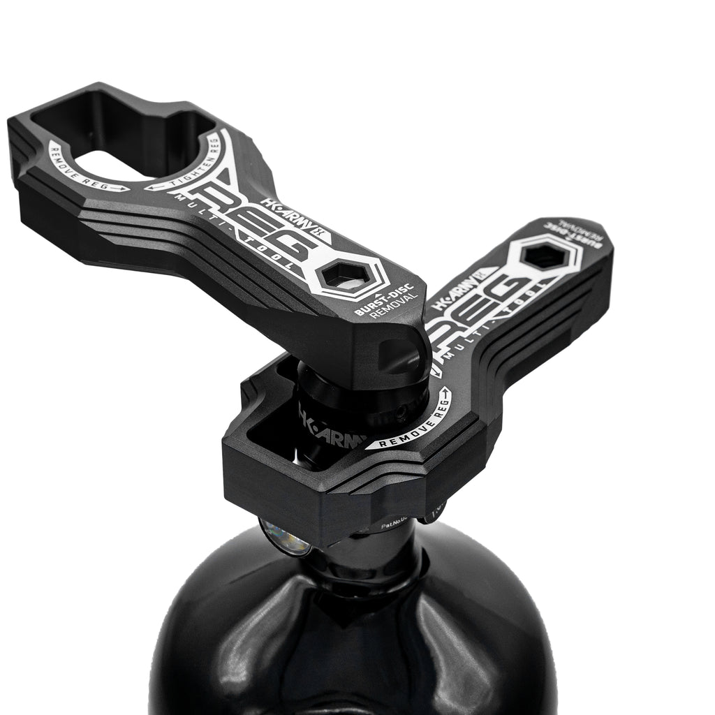 HK Army Reg Multi-Tool – the ultimate tool for keeping your tank setup dialed in and ready to roll. This tool lets you safely degas, remove, and fine-tune your regulator with ease. Its durable aluminum build, laser detailing, and smart, field-ready design mean it’s tough enough to take on any challenge – and compact enough to stay by your side with the included carabiner clip.