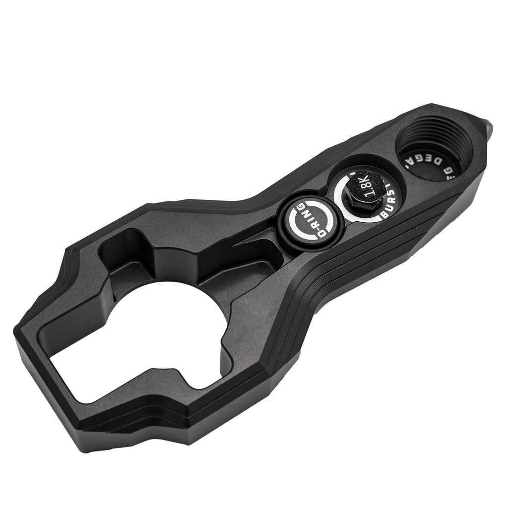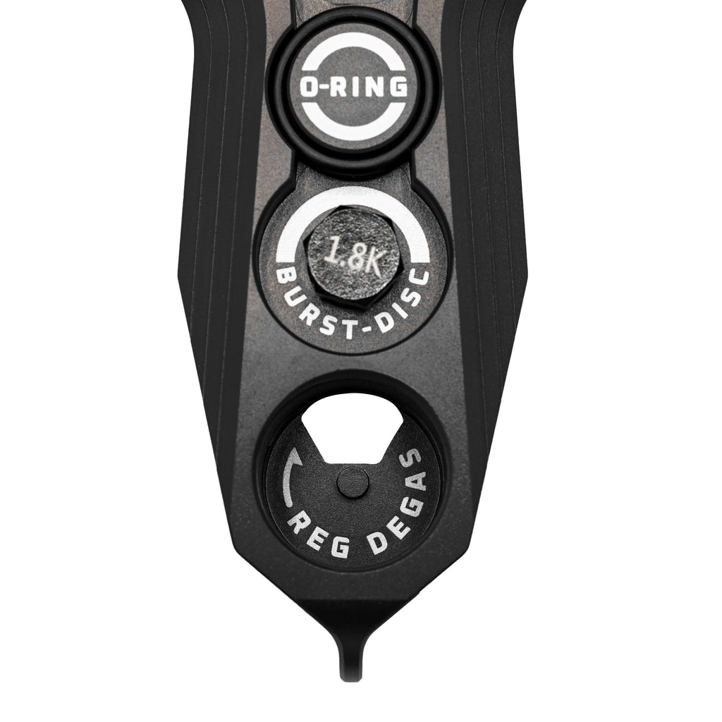 Here’s the rundown: screw your tank into the degas area to safely purge all air, then slide it through the regulator removal opening – built for both standard and long body regulators. Stubborn regulators? Secure the tool in a vice for extra leverage when you need it most. We’ve even added two spare o-rings and a 1.8k burst disc, plus a burst disc wrench that fits standard sizes. With the included carabiner, you can clip it to your pack for easy grab-and-go access whenever you’re in the field.