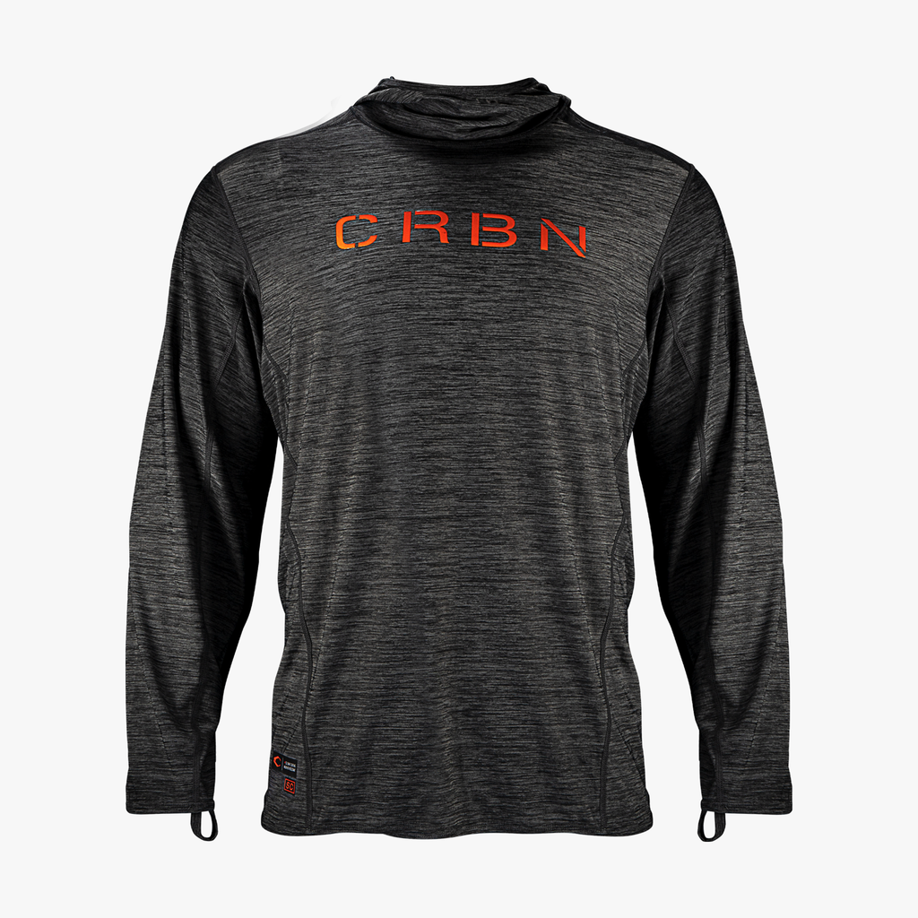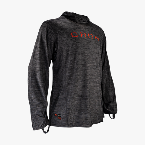 The CRBN SC Hoodie design blends lightweight coverage with comfort. Produced to keep user warm and protected from the sun. Constructed of moisture wicking fabrics, quick-dry polyester and elastane to stay dry and comfortable. Unique extended hood with neck protection from both wind and sun.
