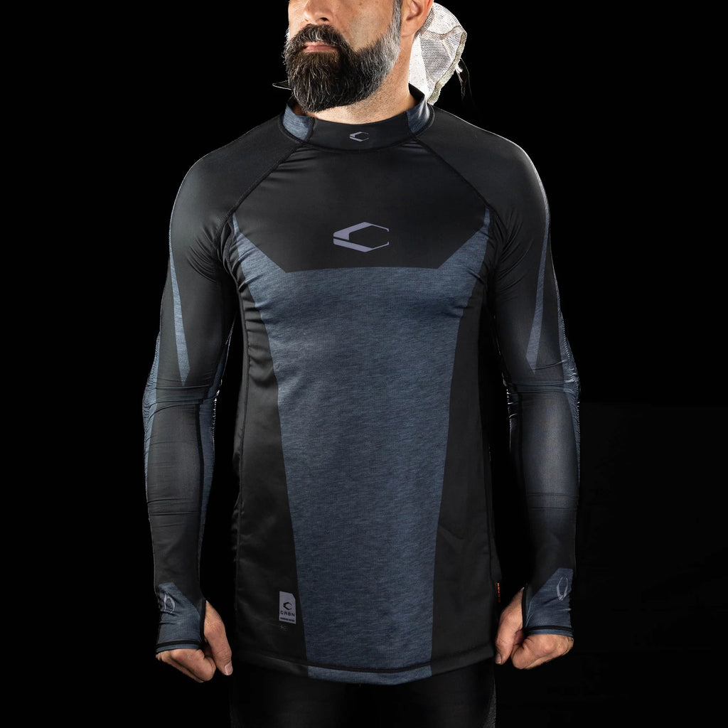 Designed to stay locked in place during intense movement, the long-sleeve fit delivers targeted protection while helping regulate body temperature under extreme conditions. Integrated dual-layer elbow pads provide impact defense, while gauntlet-style thumb and wrist loops keep sleeves secure for uninterrupted performance.