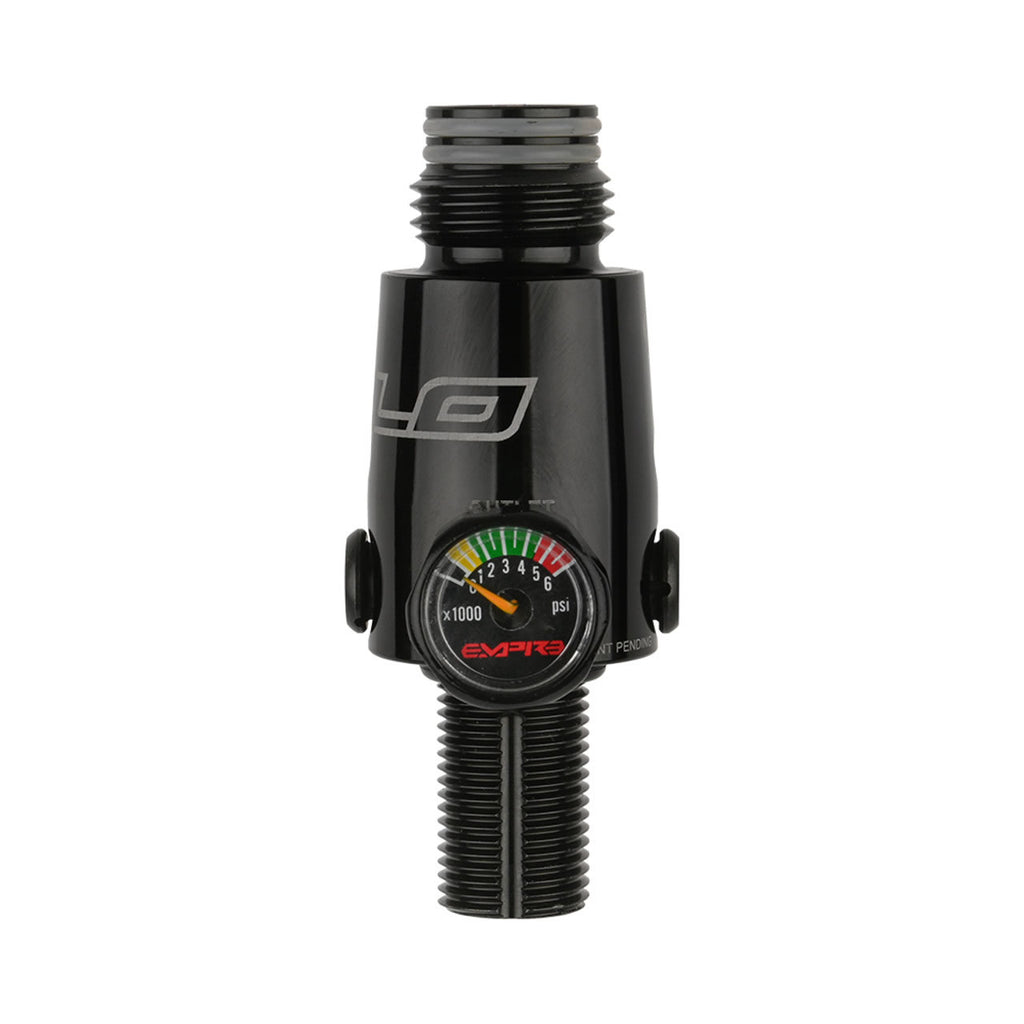 Introducing the all-new Empire FLO tank regulator. This tank regulator has been perfected over the past three years of development to bring you a reliable regulator with optimized performance. The balanced fixed ratio regulator piston allows for optimal airflow and consistent pressure to the marker. The FLO also includes a micro gauge which keeps the gauge from interfering with your grip on the marker.