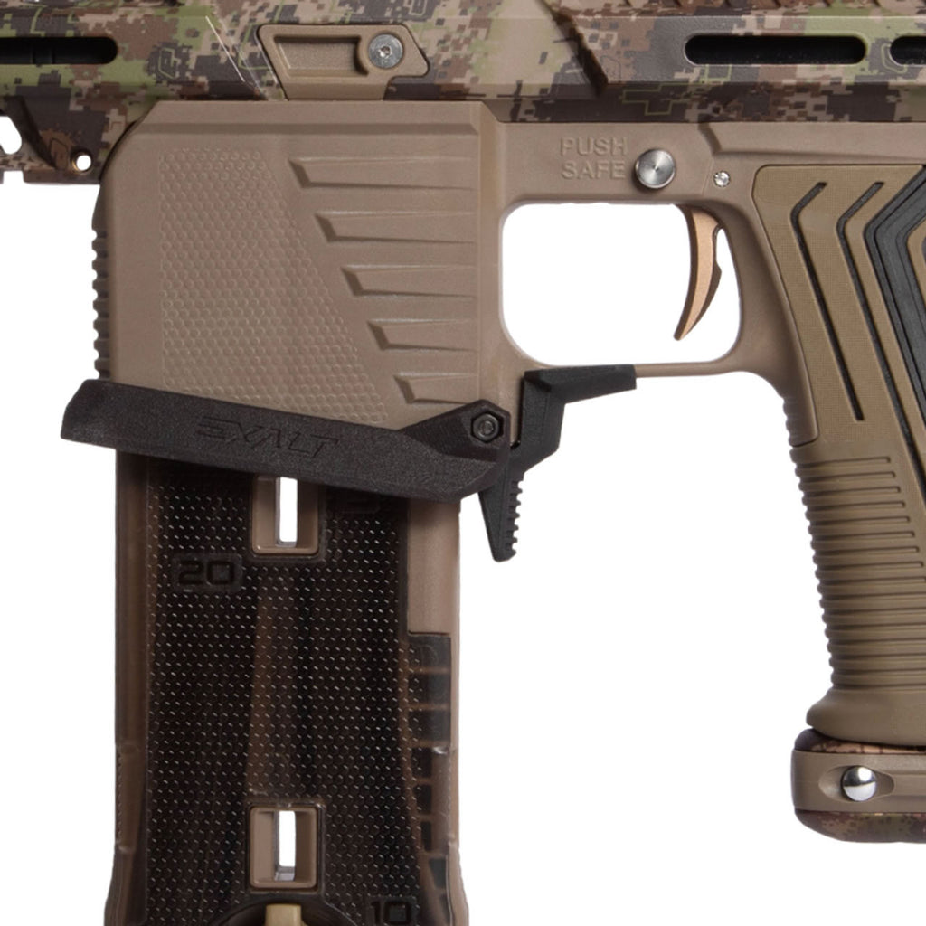 Drop your mag with just a flick of your fingertip with the new Exalt Enhanced Magazine release for the Planet Eclipse EMF100 / MG100. Requiring no permanent modification to your marker, the Enhanced Magazine release replaces your factory magazine replace in minutes and allows you drop the magazine with your trigger finger instead of having to use your support hand.