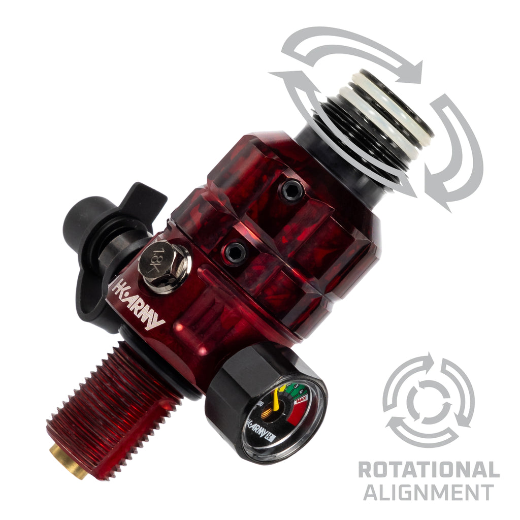 The HK Army Turbine Pro Regulator is engineered for players who demand flawless performance under pressure. Every component has been re-imagined for reliability, precision, and confidence in the most demanding environments. From its fully adjustable output pressure (350psi-650psi) to its 360° rotational cap that lets you align the gauge and fill valve exactly how you want them, to its reinforced internals and pro-grade quality control testing, the Turbine Pro Reg sets a new standard for air system technology.