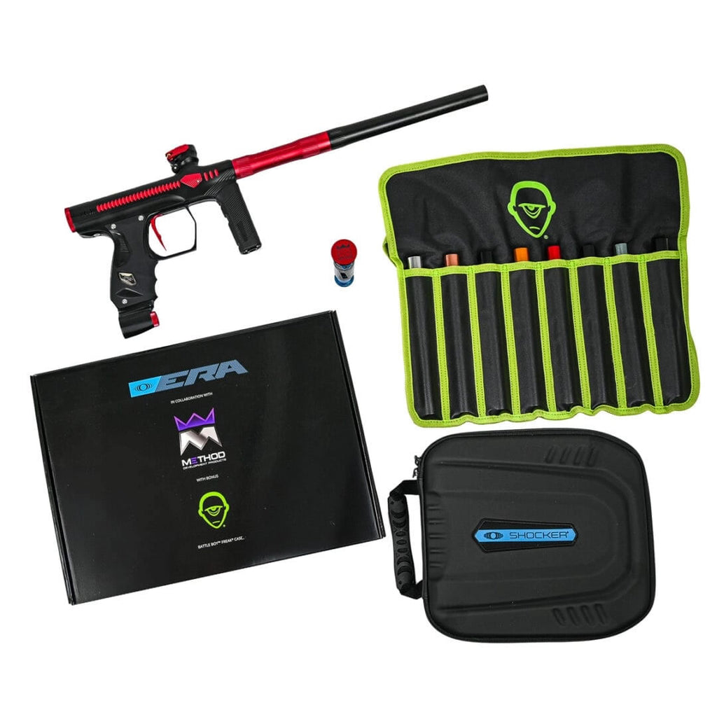 The New DLX Method Shocker is the next generation marker built of precision and power. This premium kit includes the Shocker with Method internals, a full XL Boremaster Kit with barrel bag, and custom milling with color-matched accents-designed to deliver a new level of precision and dominance on the field.