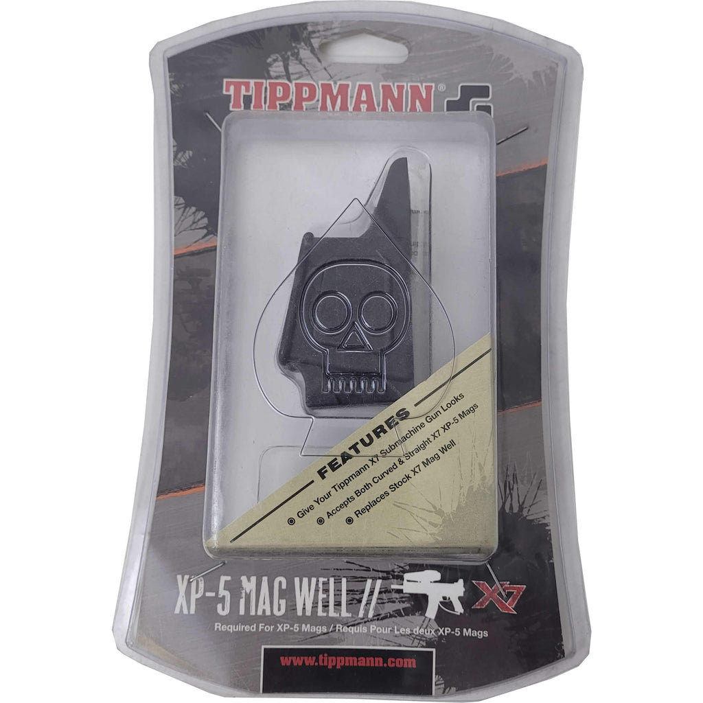 This is the mag well needed if you’re looking to use a small XP5 mag (curved or straight) with your Tippmann X7 paintball marker. (The 9mm mag well is designed to accommodate the small XP5 style magazines.)