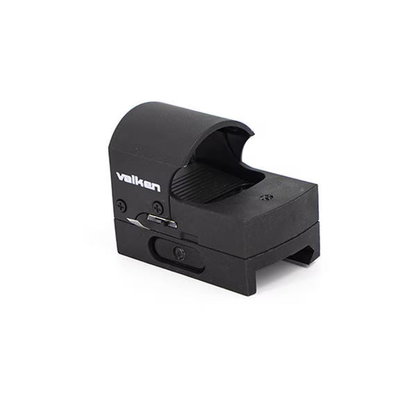 The Valken Hooded Mini Red Dot Sight is a reflex sight for airsoft guns. The mini reflex red dot sight housing is molded from a glass filled nylon polymer, and mounts to most 20mm picatinny and weaver rails. This tactical optic includes a CR2032 battery to illuminate the 5 MOA red dot, and has an extended hood to protect the laser diode from dirt/dust and sun glare. This airsoft optic is a great reflex red dot for airsoft pistols or SMGs. We recommend our Valken Sight Protector Kit for use with this red dot sight.