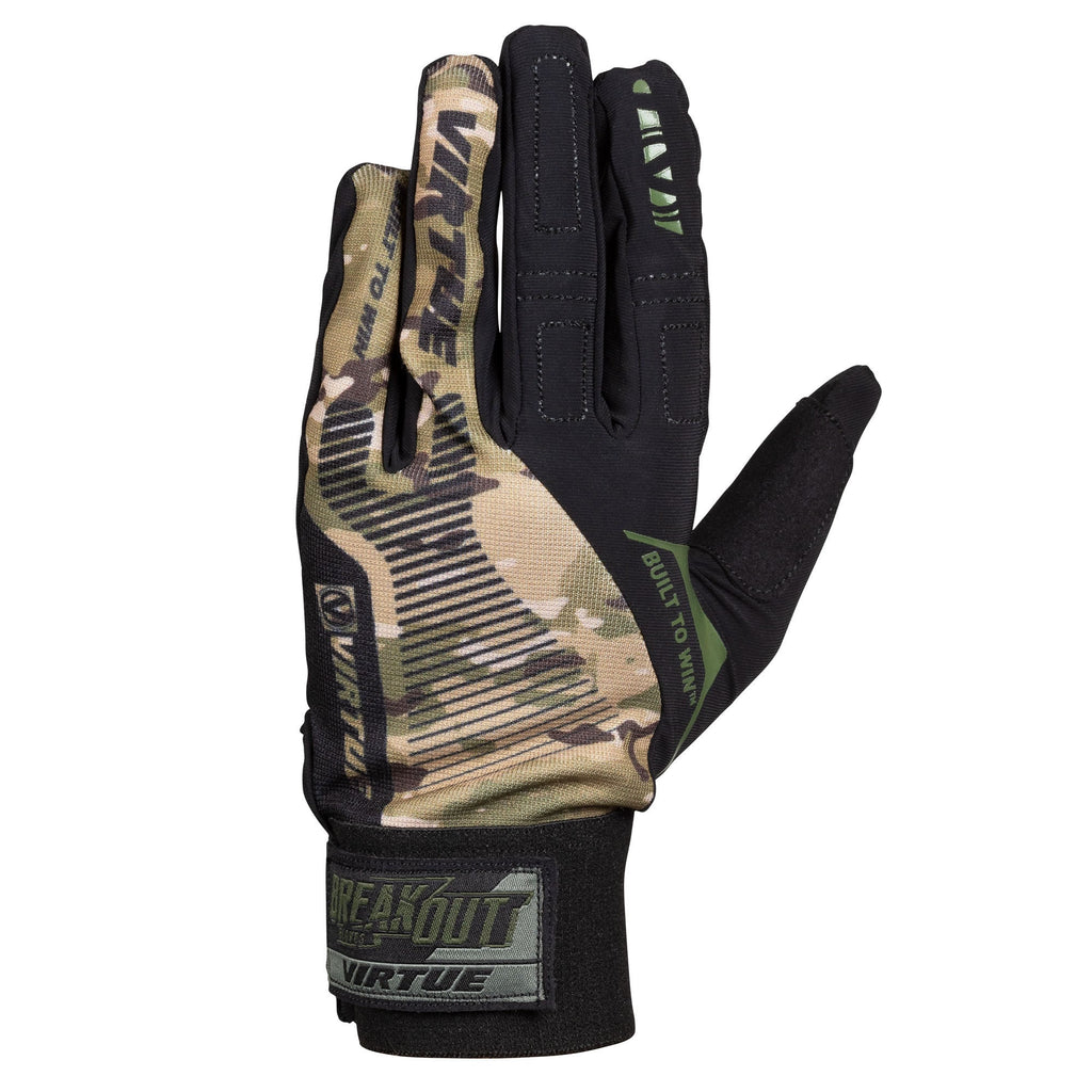 Ripstop, tear resistant fabric with light weight finger padding defines the Virtue full-finger Breakout gloves. These gloves are great for all styles of play, work, sports alike. Whether you're crawling through thick, snaggy underbrush or just want something to keep you fingers fully protected, the Breakout full-finger gloves will do it all and fit comfortably with minimum interference. Warm in the winter, and cool in the summer thanks to an active moisture wicking design that keeps the hands cool and dry.