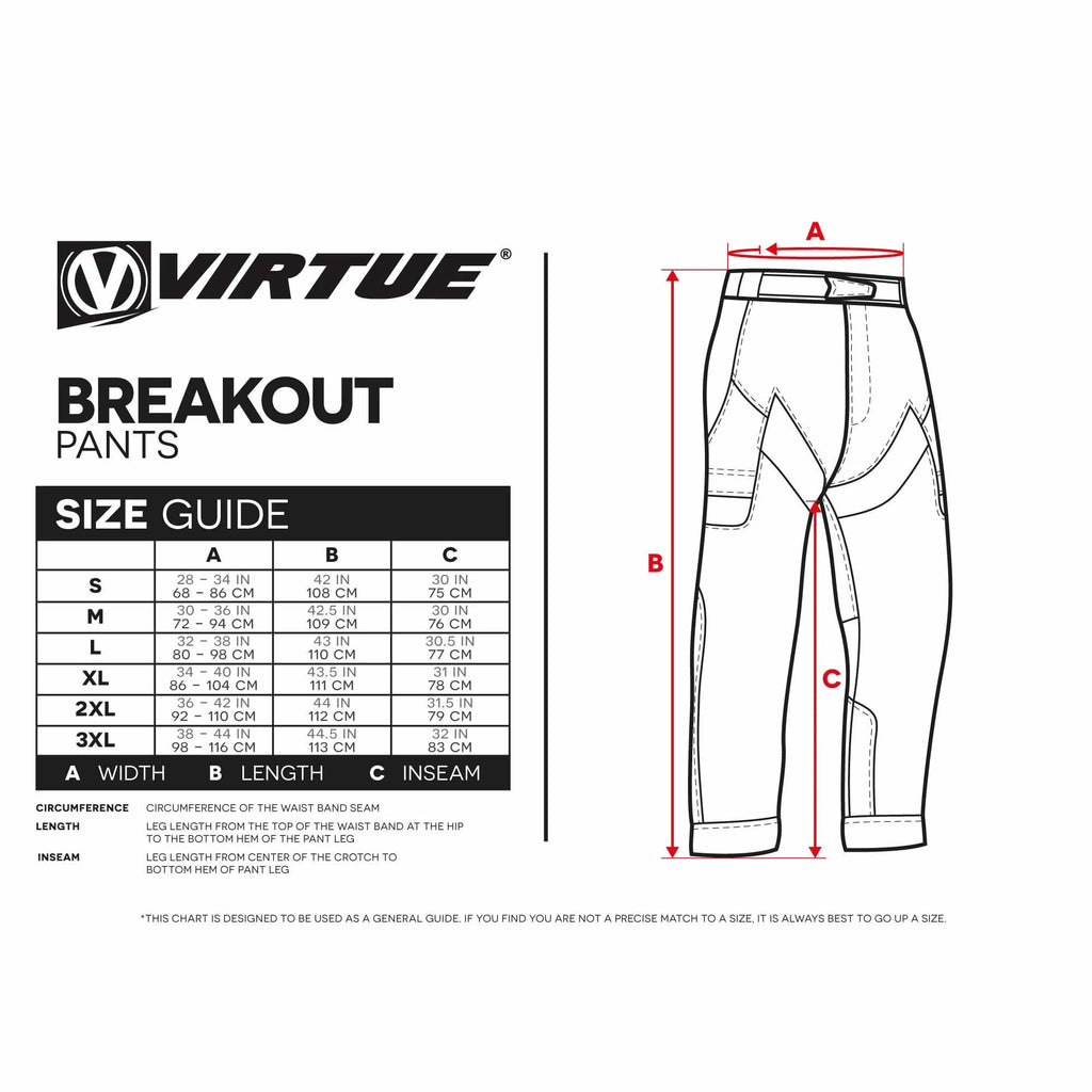 The Virtue Breakout Pants are for every type of paintball player that demands comfort, durability, and unrestricted movement. Breakout Pants are the perfect balance of a lightweight athletic paintball pant, combined with durable construction. Lightweight, breathable comfort with an athletic cut that's neither bulky nor excessively slim. And each leg features a velcro adjustment for players who prefer an even more streamlined fit. The Breakout Pants truly provide a precise fit for every style of play.